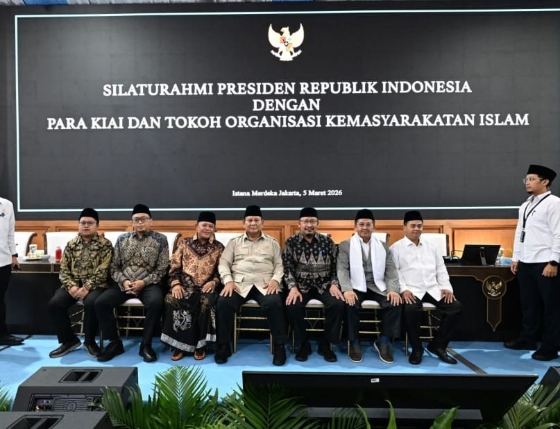 Presiden Prabowo Subianto menggelar acara buka bersama dan silaturahmi dengan para kiai dan tokoh organisasi kemasyarakatan Islam di Istana Kepresidenan Jakarta, pada Kamis, 5 Maret 2026.