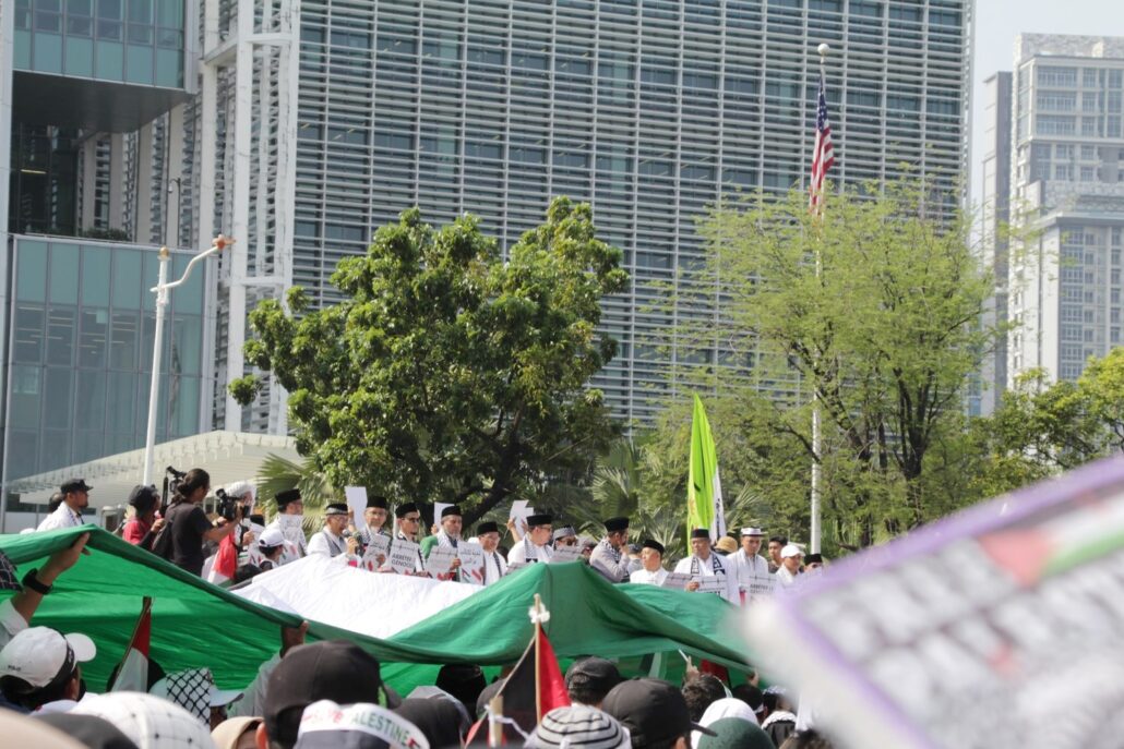 - Memprotes keras Amerika Serikat atas dukungan penuh, baik dana maupun militer, terhadap kejahatan perang dan genosida yang dilakukan oleh Israel.