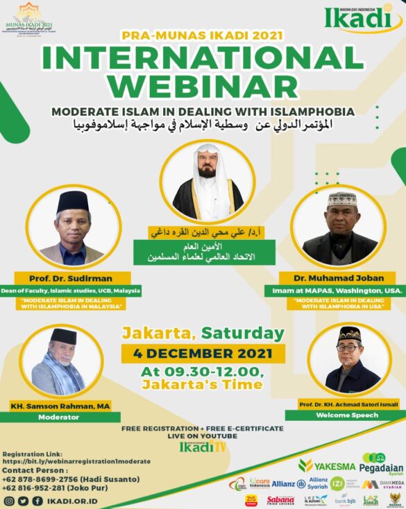 WEBINAR INTERNASIONAL Dalam rangka MUNAS IKADI 2021 Tema : MODERATE ISLAM IN DEALING WITH ISLAMPHOBIA Pembicara : 1. Prof. Dr. Ali Al-Qaradaghi Sekjen…