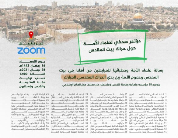 IKADI BERSAMA 55 ORGANISASI ULAMA DAN DAI DARI SELURUH DUNIA MERESPON SERUAN ORGANISASI RADIKAL YAHUDI YANG MENGAJAK MENYERBU MASJIDIL AQSHA