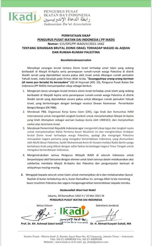 Ikatan Dai Indonesia (IKADI) ikut membersamai 55 Organisasi Ulama dan Dai dari seluruh dunia yang peduli terhadap Masjidil Aqsha dan Palestina, menandatangani pernyataan…