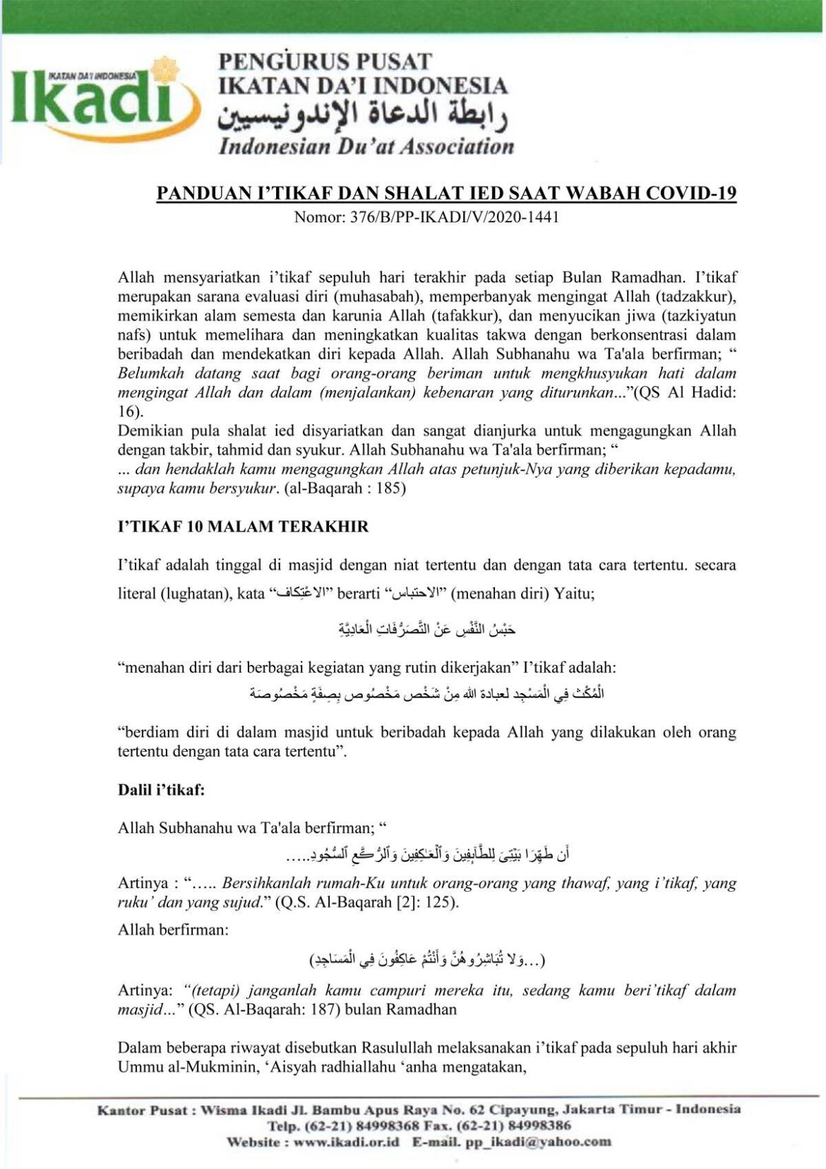 Artikel PANDUAN I’TIKAF DAN SHALAT IED SAAT WABAH COVID-19 by admin 13/05/2020 written by admin 13/05/2020 144 0 comment 0 FacebookTwitterWhatsappTelegramEmail admin previous post Selamat Jalan Ustadz Tamim.. next post IKADI Minta Netizen tak Banyak Menghujat di Masa Ramadhan You may also like MEMPERBANYAK TAKBIRAN DI SEPULUH AWAL DZULHIJJAH 20/06/2023 MEDSOS DALAM PANDANGAN AL-QUR’AN 28/04/2023